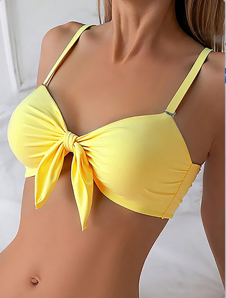 Solid-color Halter Split Swimsuit For Women